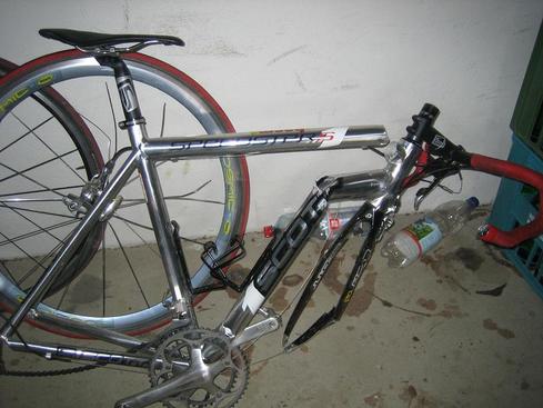 Hier ein Foto vom Rennrad nach dem Unfall.
