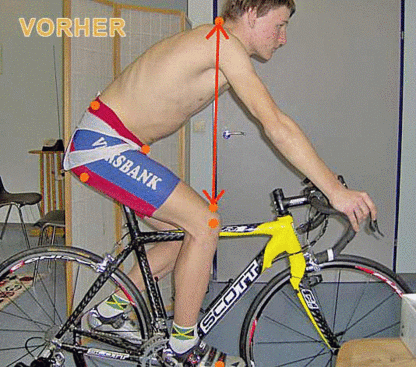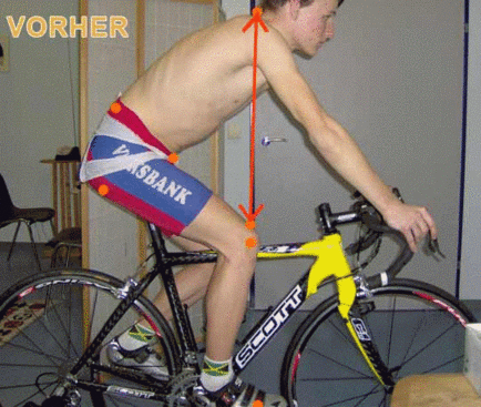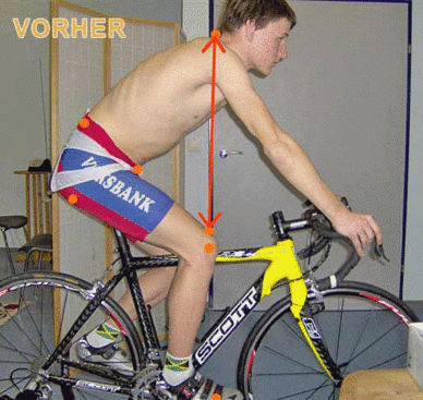 Nach der Einladung kam ich zu Gernot in die Praxis, wo ich einen Kommentar über den Zustand seiner Sitzposition auf dem Rennrad abgab.