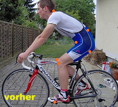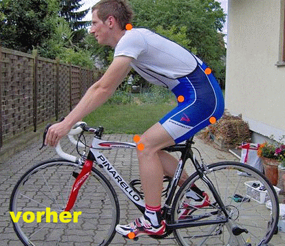 Hier ein Foto von der ersten Korrektur der Sitzposition