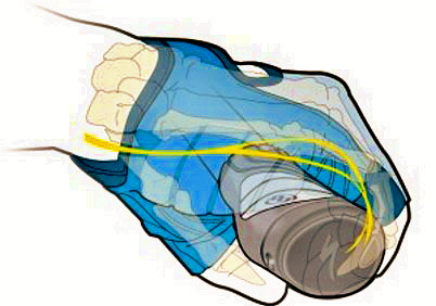 Im Vergleich zu herkömmlichen Griffen und Handschuhe reduzieren Body Geometry - Griffe und - Handschuhe den Druck auf den Ulnar - Nerv um 19%.