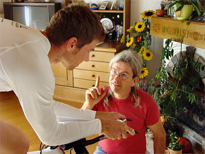 Meine Aufgabe ist es, die Sitzposition auf dem Rad zu verbessern. Durch das Umstellen des Sattels und Vorbaues, sowie die von mir gefertigten Schuheinlagen, kann ich die sieben Punkte für eine optimale Sitzposition richtig einstellen, damit sich beim anschließenden Laufen keine Probleme ergeben.