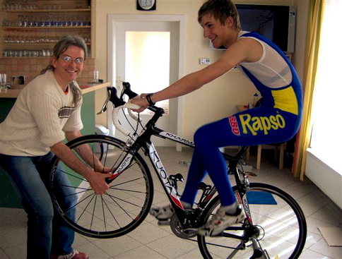 Ein Foto mit Sascha Schimpfhuber und mir, wo ich bei ihm eine neue Sitzposition einstelle.