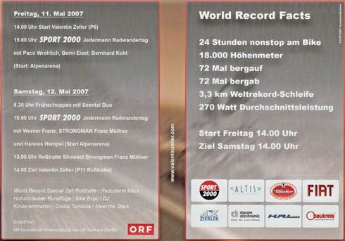 Neuer 24 Stunden Höhenmeter-Weltrekord aufgestellt am 11./12. Mai 2007 von Valentin Zeller.